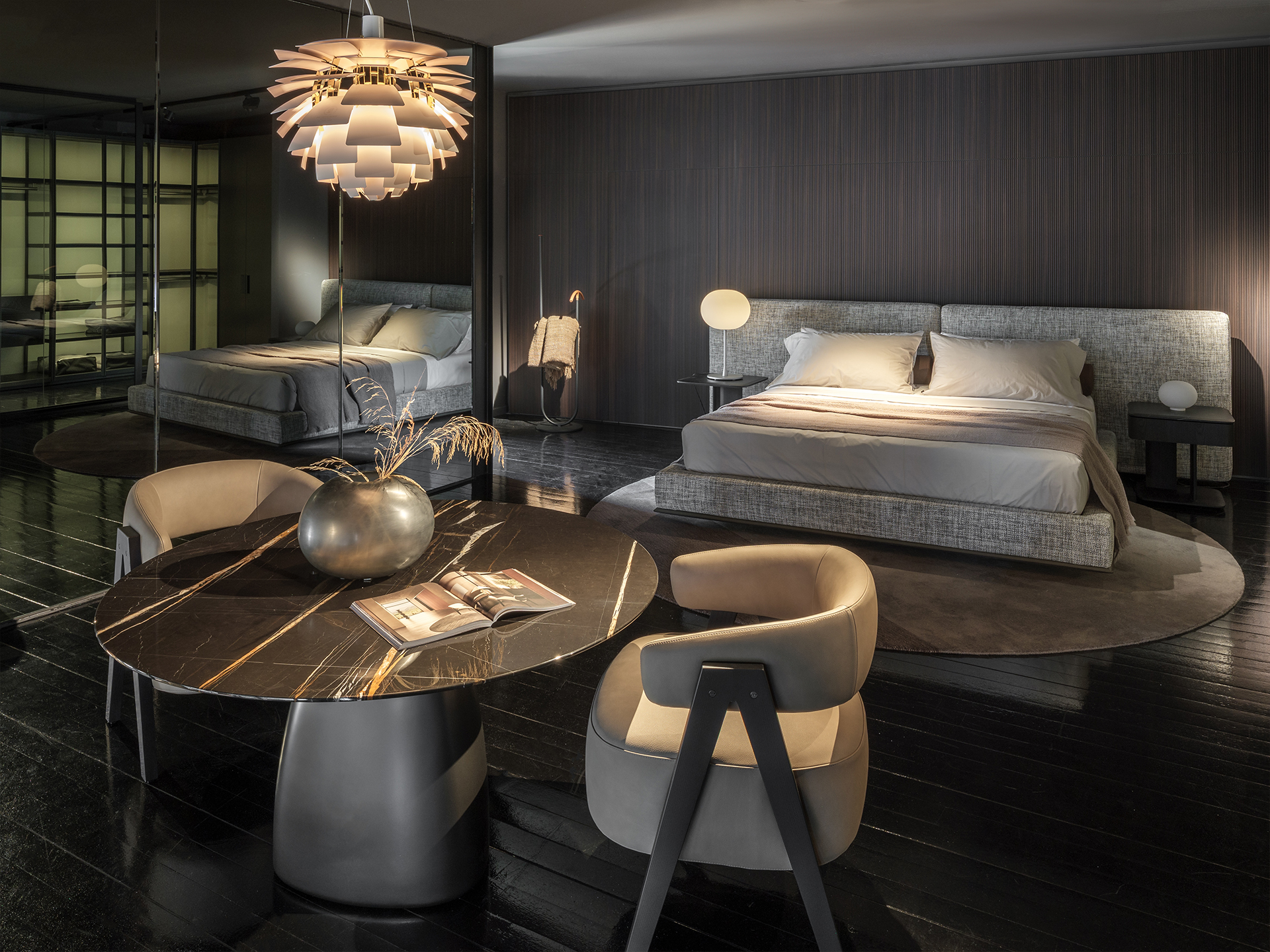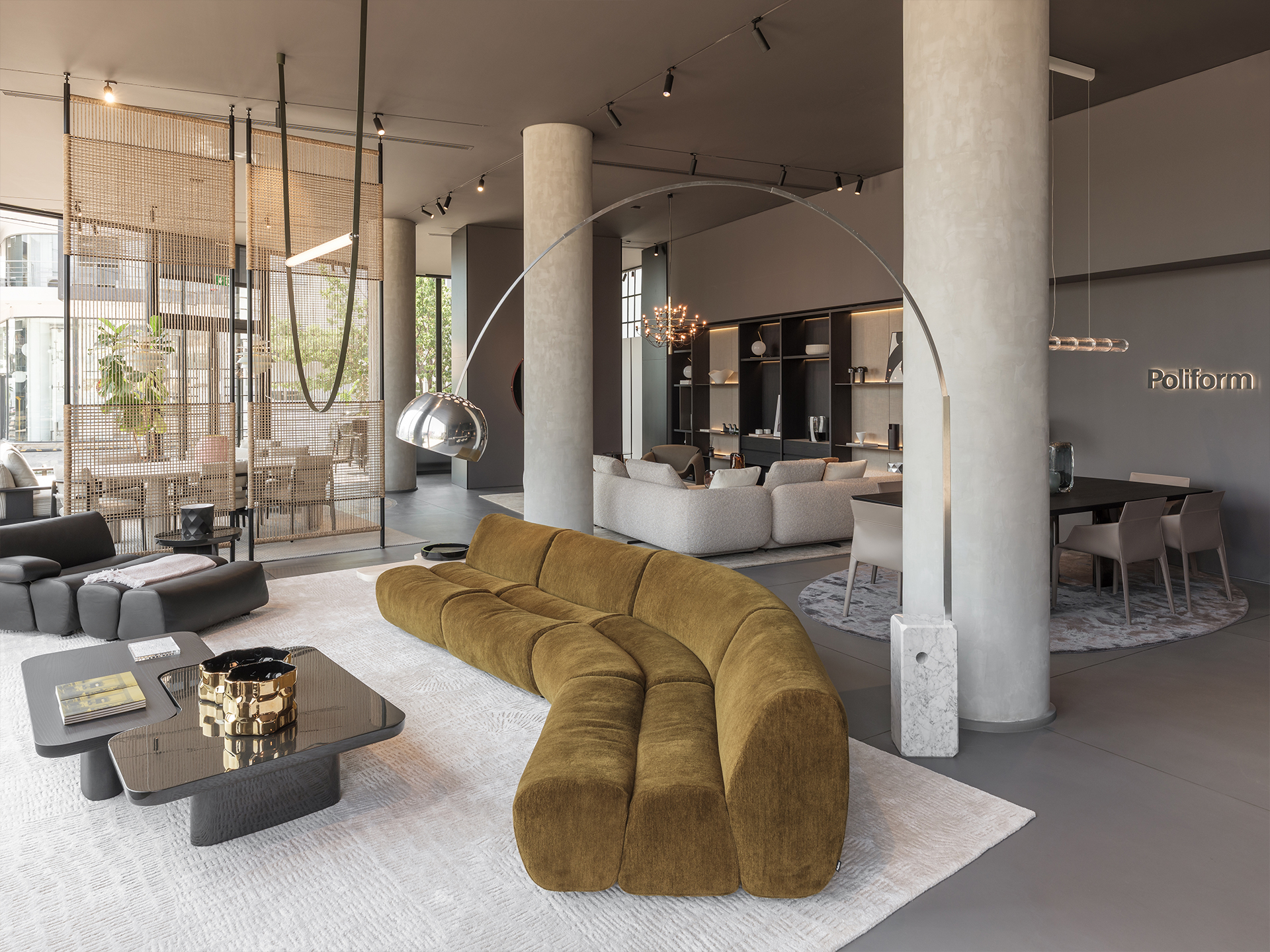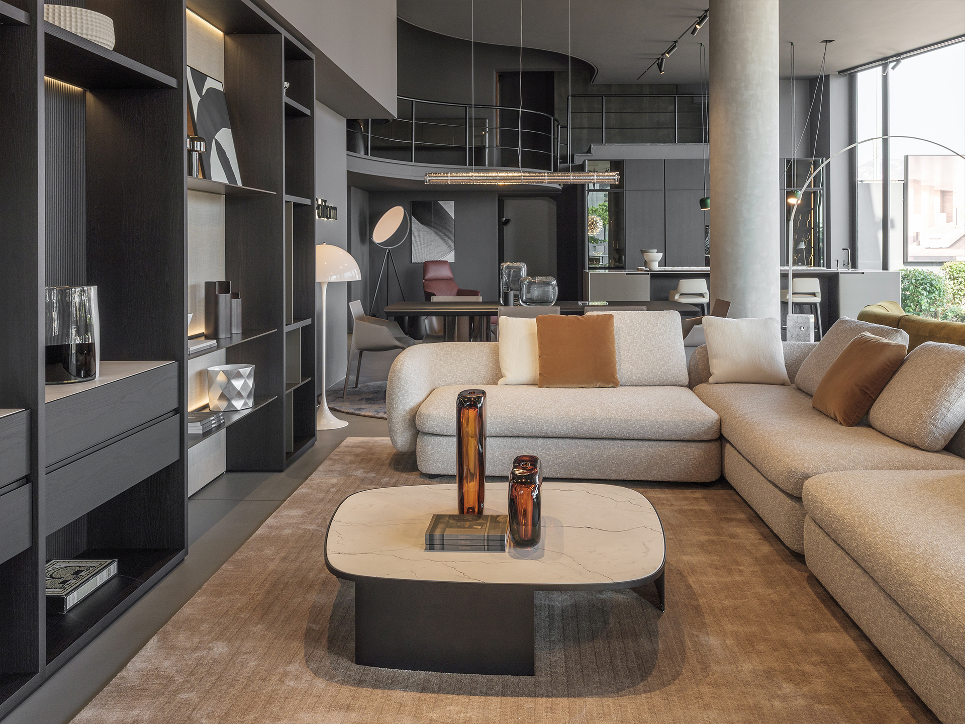 The new Poliform exhibition space is aligned with the ease of living and elegance that define the brand. The space in its entirety brings out the allure of the Poliform way of living. Through the large windows on the ground floor and even before entering the store, one can sense the elegance and refined design of Poliform collections, which recreate the ideal of a complete home.