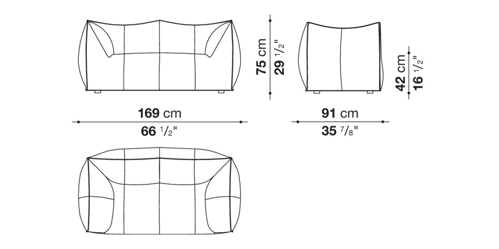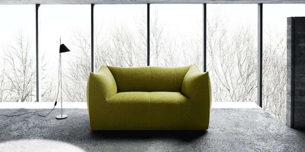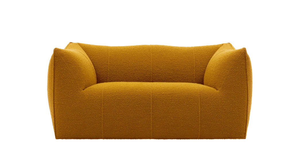 The Bibambola two-seater sofa is part of Le Bambole series, originally designed in 1972, awarded with the Compasso d’Oro in 1979. Icon of timeless contemporaneity and one of the most effective expressions of Made in Italy excellence combining research and creative flair, Le Bambole have provided a very personal answer to the theme of seats. What makes them special is the apparent absence of a load bearing structure, the extreme naturalness of the shape, and the combination of comfort, softness and elasticity that their appearance conveys. Where the original construction was based on a metal structure embedded in polyurethane, now the materials used are of the latest generation, starting with recycled polyethylene gives structure. A sustainable project thanks to the choice of materials and the construction method, that allows the components of Le Bambole to be completely disassembled and therefore easily recyclable.