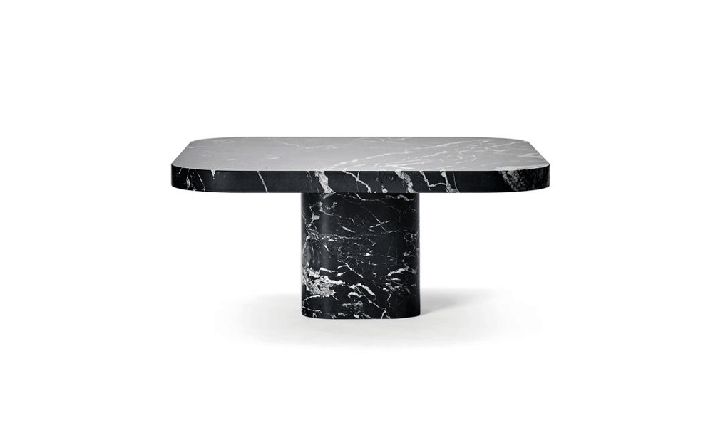 Inspired by 1970s lines and designs, it is a series characterised by casual elegance. Covered with metal or completely made of marble, the surface of the tables quotes futuristic designs of the era and is, however, a clearly contemporary design. The Bow Coffee Table in metal is available in five sizes, and the marble version in one size. Combined in different heights, the tables can be arranged as a group with overlapping tabletops, resulting in a dynamic sculpture with a generous and multi-level storage surface.