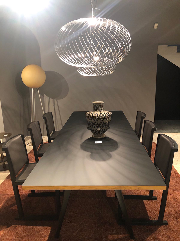 The table 1500 is both sturdy and elegant: The tabletop seems to float on the aluminium or wooden legs, which taper slightly towards the bottom. Beneath the tabletop, the legs are connected via traverses, allowing even long tables to do with just four legs. Modern media technology and all types of cable connections are discretely integrated into the tabletop upon request.
