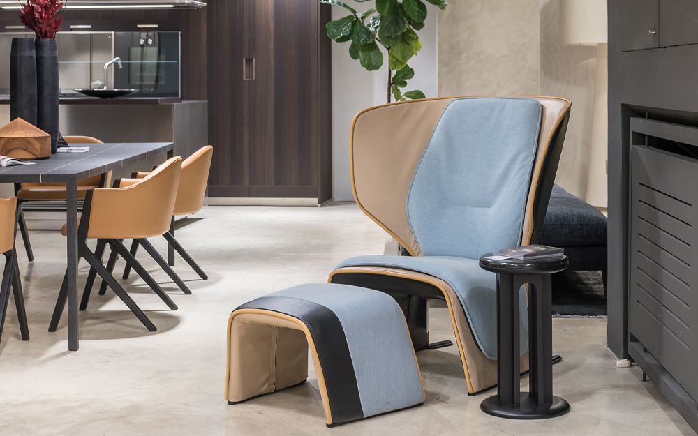 Gender by Patricia Urquiola is an elegant, enveloping design armchair with many personalities, thanks to the combinations of colors and materials of the upholstery and finishes.