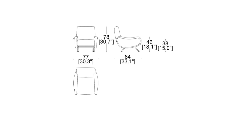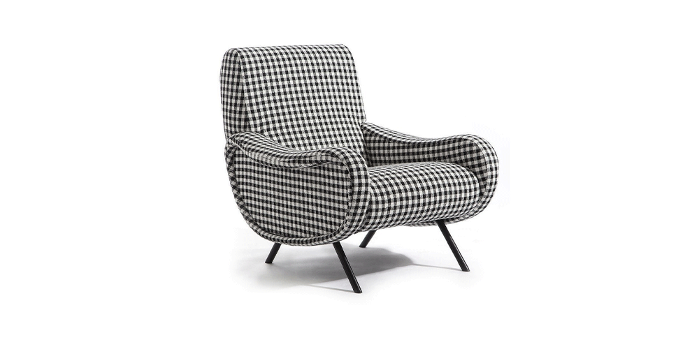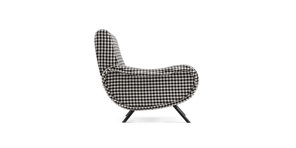 An icon of 1950s’ Italian Design, the armchair-sofa Lady stands out for its extraordinarily contemporary construction, a symbol of innovation supreme, in terms of style, materials, and technology. In addition to being the first armchair to incorporate expanded polyurethane and foam rubber, the armchair’s seat showcased a new system of springing, using reinforced elastic straps to ensure premier comfort; meanwhile the slender, slim-line metal legs showcase the design’s lightness of touch. The structure is contained in the seat, the back, and the arms, the outcome being a veritable masterpiece of Italian furniture design excellence; so much so that Lady was awarded the Gold Medal at the IX Milan Triennale, in 1951. Cassina’s new re-edition focuses on the looks of the Lady chair, adding a delightful range of new fabric options, including a number by Belgian designer Raf Simons.
