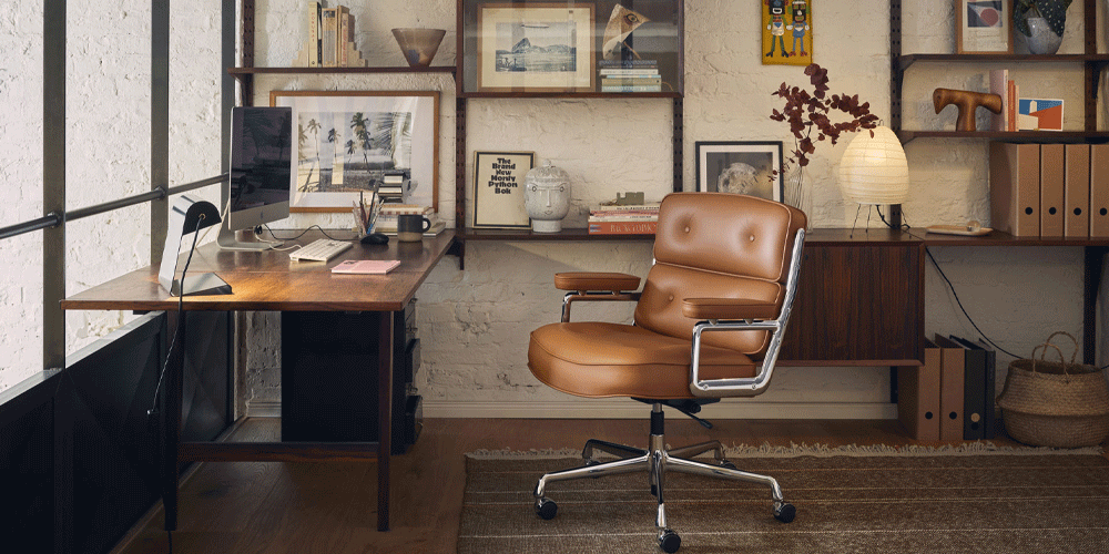 Charles and Ray Eames originally designed the Lobby Chairs for the Time & Life Building in New York City. The ES 104 Lobby Chair, outfitted with the luxuriant leather cushions that distinguish this legendary seating group, is an ideal task chair for prestigious office environments.