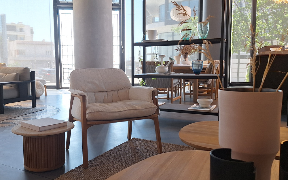 The deep cushion of the Nomad easy chair is stitched to cocoon the body, folding over the armrests and moulding into the broad curve of the backrest. Designer Monica Armani used what she calls ‘noble teak wood’ for its warmth, smoothness and strength. Slender legs and contoured armrests give the chair its elegant profile and the smartly stitched cushion is as luxurious as it is comfortable. Nomad, like its name, works well wherever it is placed, in combination with a lounge set-up or as a stand-alone piece.
