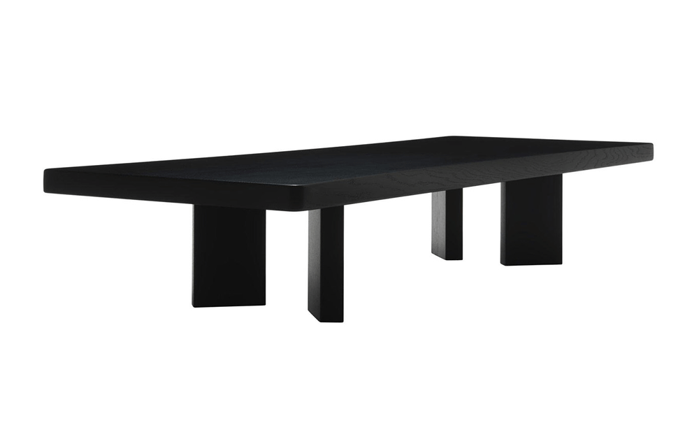 A coffee table in solid wood, extremely complex in terms of technology yet very simple in terms of design, this piece was created by Charlotte Perriand in 1969 for the Japanese embassy in Paris. The ideas for this table derives from the impact made on Perriand when she saw a colossal rock, whose enormous weight was undercut by the way the waves had eroded it, rendering it smooth.
