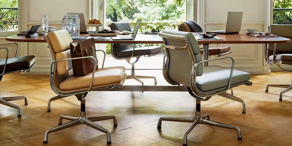 The Soft Pad Chair EA 231 is equipped with an adjustable tilt mechanism and an upright seat angle adapted to desk work. Designed without castors, it does not resemble a typical task chair and its casual inviting appearance makes a perfect addition to any well-appointed home office.