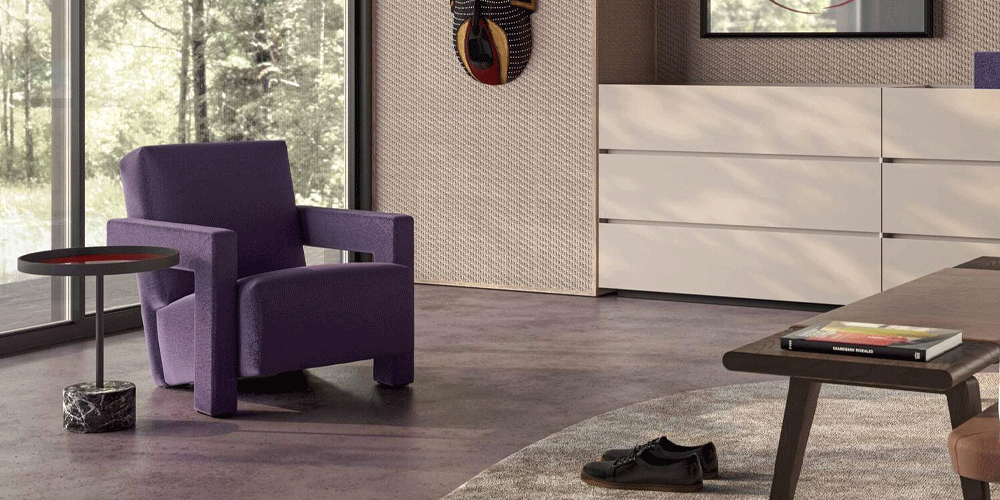 Gerrit Rietveld came up with the design for the Utrecht armchair in 1935 while working for the Metz & Co. department store in Amsterdam, where his brief was to make a chair for serial production. Taking market needs into account, while privileging a comfortable and relaxing experience, led to the elements of the chair being treated as separate units. As a consequence, the chair became an icon of both the Neoplastic movement (aka De Stijl), and of Rietveld’s experimental vision. In 2015, the original version of the chair, without the feet, was made available alongside the one with, as part of the Mutazioni collection, and was relaunched with its dimensions adjusted to take account of changes in people’s height over the previous 80 years.