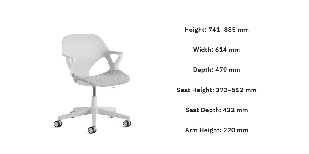 The Zeph chair finds a happy home between mid-century modern aesthetics and the research-backed ergonomics of today’s task chairs. Its sophisticated yet simple design offers more for less—more comfort, color, and style—built with fewer components and at a price point that makes it the perfect entry into the world of Herman Miller performance seating.