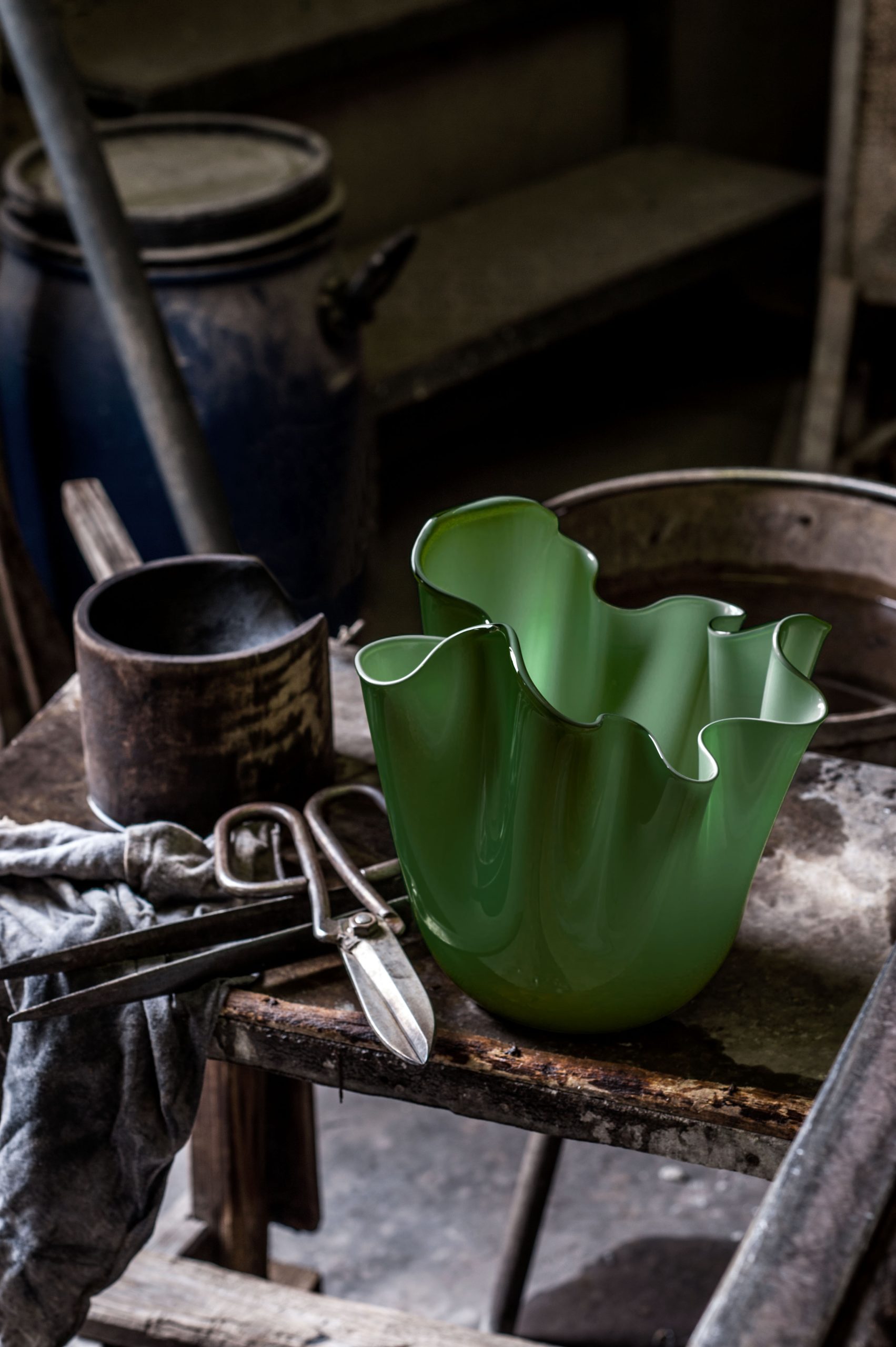 After the second world war, the company continued to create products in a modern style thanks to their collaboration with a number of highly regarded mid-century designers and architects. When Venini died in 1959, the company remained within the family until it was acquired by the Gardini and Ferruzzi families in the mid-1980s and then later in 2001 by Italian Luxury Industries. In 2011, Venini celebrated its 90th anniversary with a travelling exhibition that was held at the Glass Museum of Murano, Palazzo Grassi and Punta della Dogana in Venice, the Shanghai Museum of Glass, and the Bagatti Valsecchi Museum in Milan. Today, Venini’s own museum arguably boasts the world’s most significant private collection of 20th century glass. Venini’s outstanding influence on design history is also internationally recognised by the most prestigious museums, including The Louvre, V&A and MoMA, where Venini glass is part of their permanent collection.
