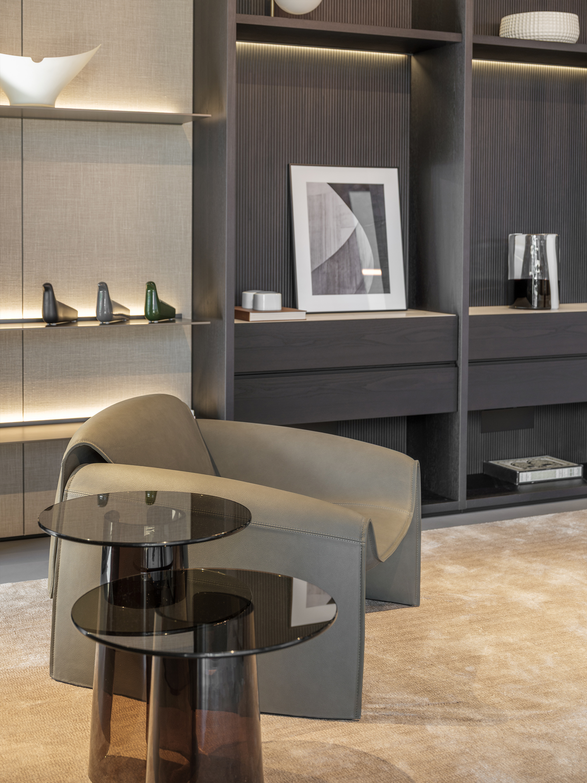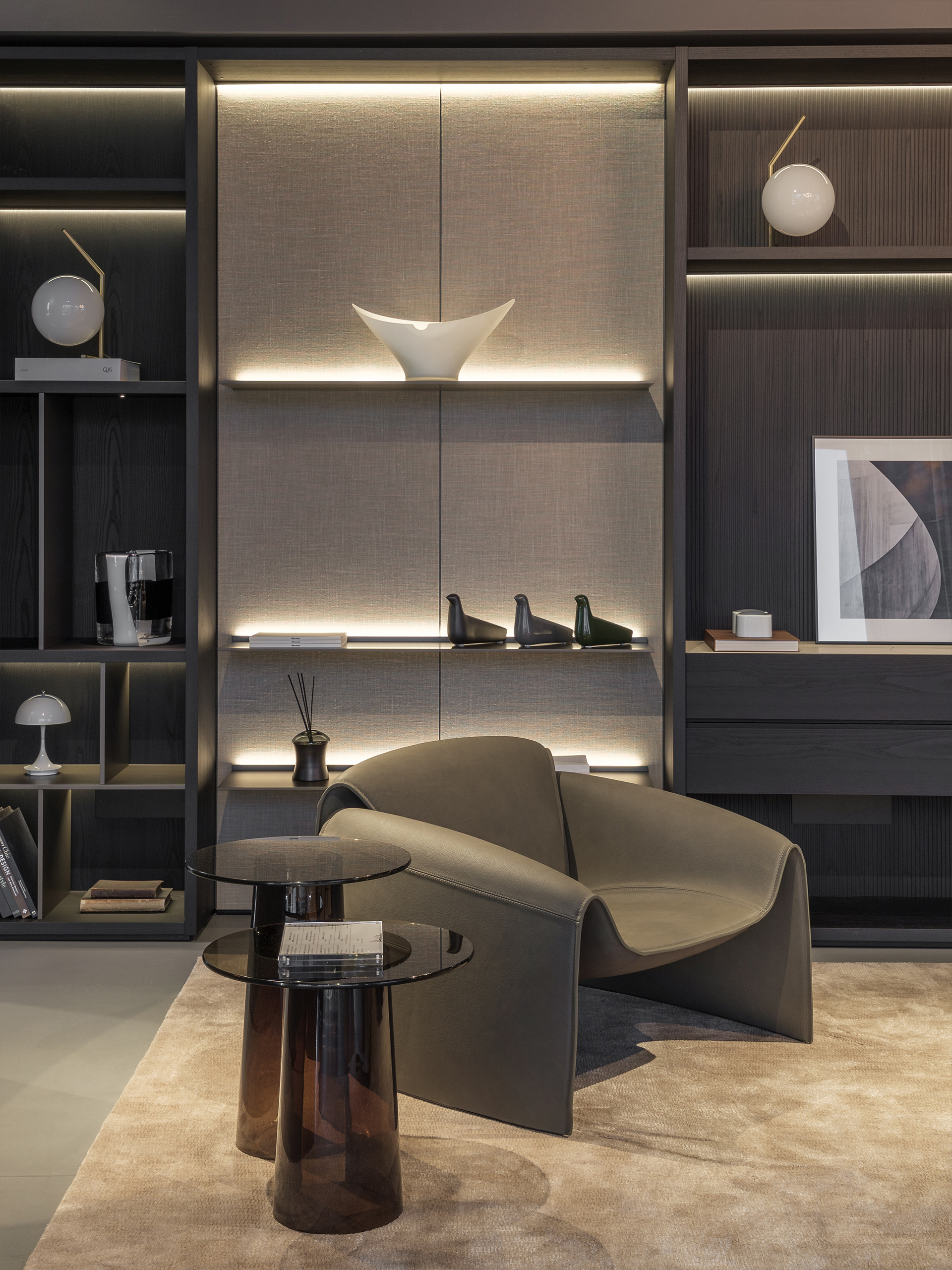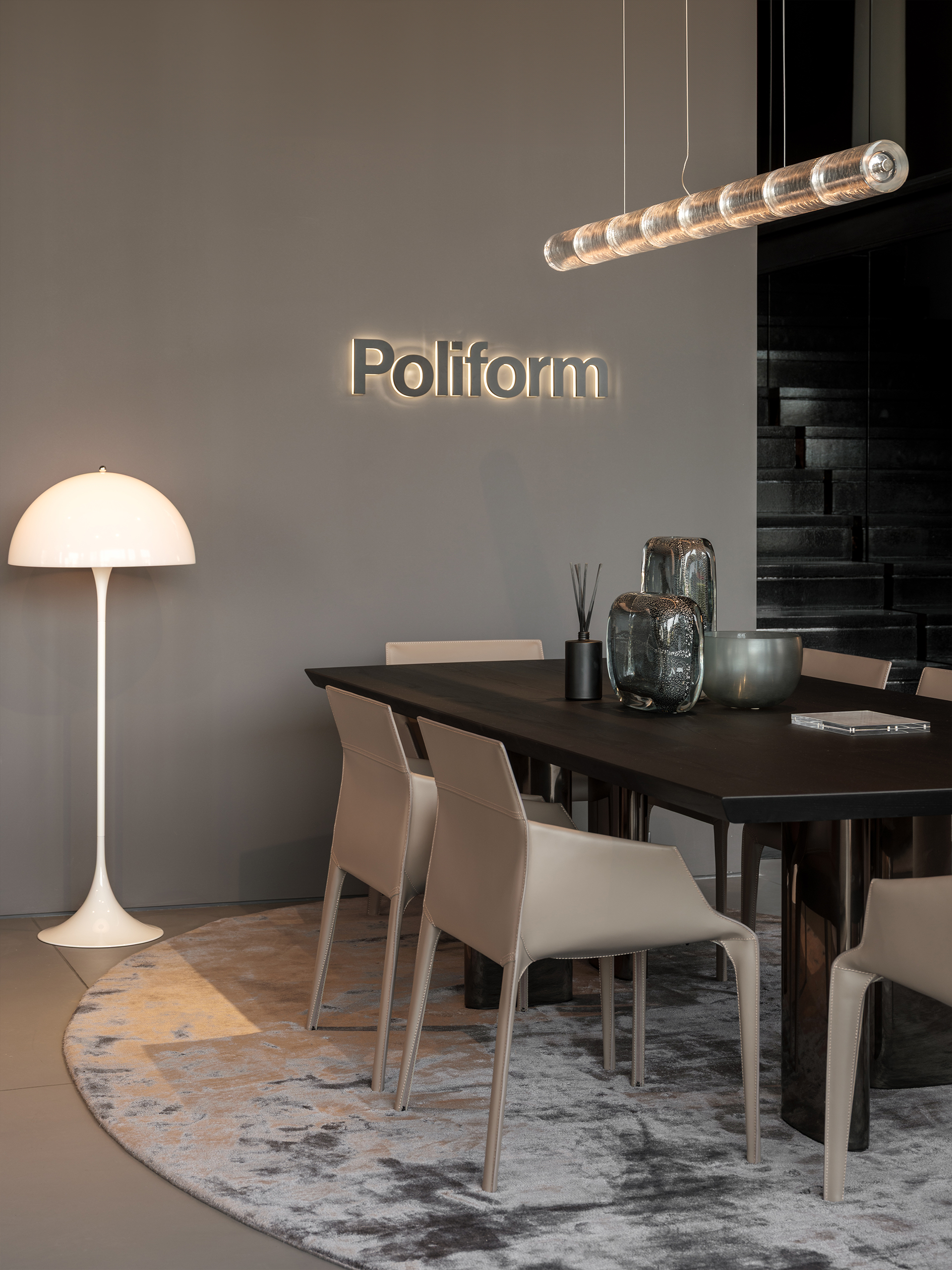 The new Poliform exhibition space is aligned with the ease of living and elegance that define the brand. The space in its entirety brings out the allure of the Poliform way of living. Through the large windows on the ground floor and even before entering the store, one can sense the elegance and refined design of Poliform collections, which recreate the ideal of a complete home.
