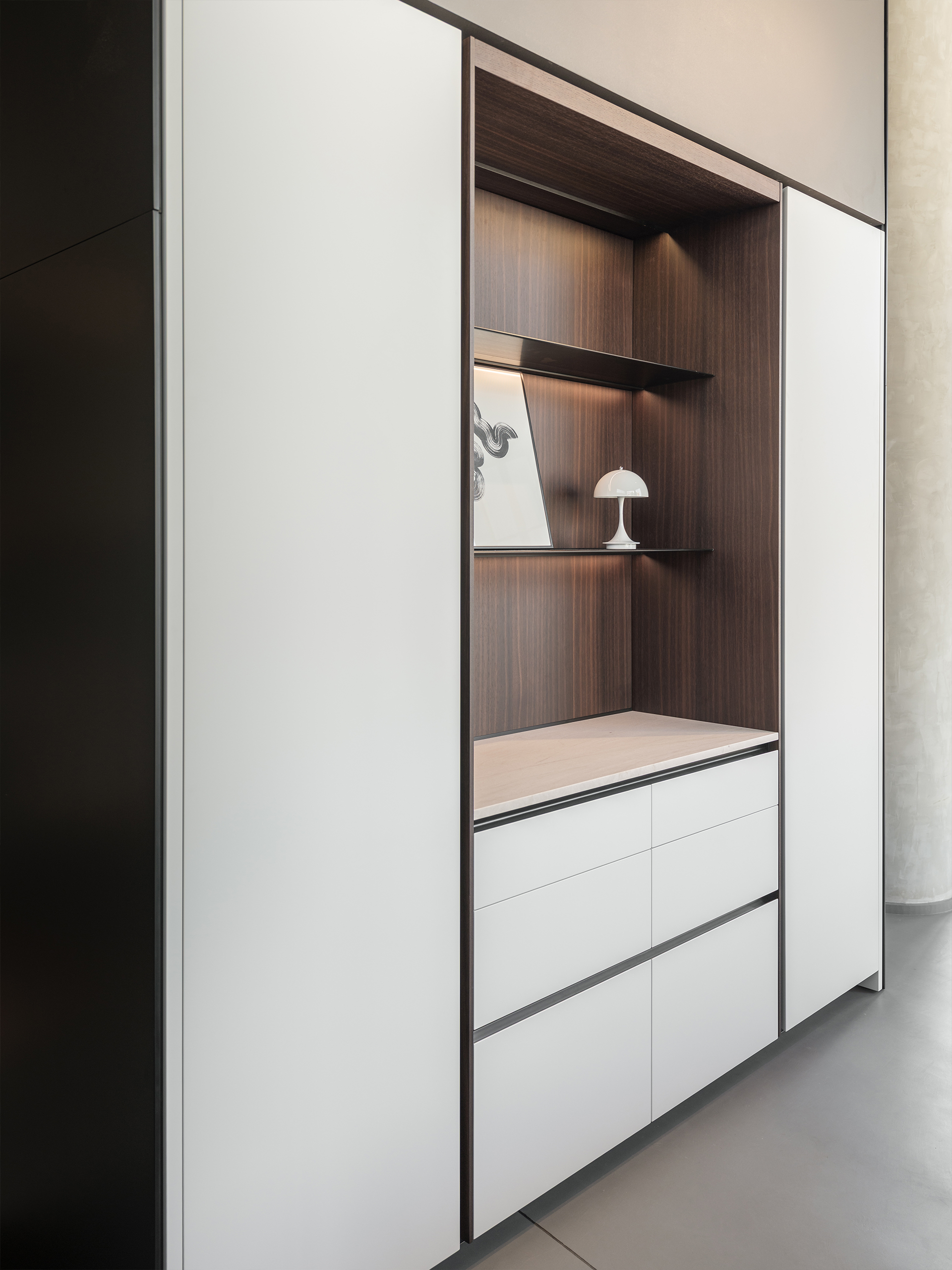 In addition to that, on the main floor there are also two Poliform kitchen compositions, the Alea Pro and Artex Pro, ready to fulfill the daily culinary needs of even the most demanding clients.