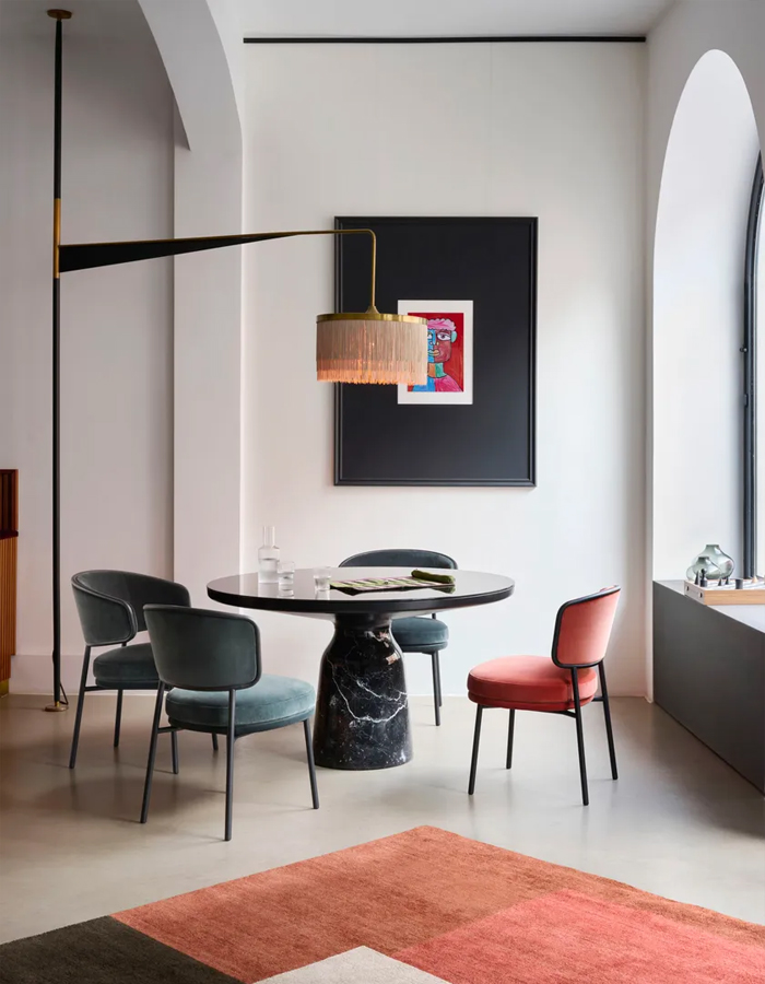 The Aristo range of chairs combines premium comfort with precise design.‎ The name áristos’ (ἄριστος), ancient Greek for ‘the most excellent’ or ‘the noblest’, alludes to the classic elegance of the design and the premium craftsmanship.‎ The chair’s most outstanding feature is the backrest with upholstery on both sides framed by elegantly curved seamless tubular steel.‎ Equally distinctive is the double upholstered seat with a striking shadow gap between the upholstered base and the voluminous seat cushion with spring core.‎ The layered upholstery offers inviting comfort, perfect for relaxed evenings with friends and family.‎