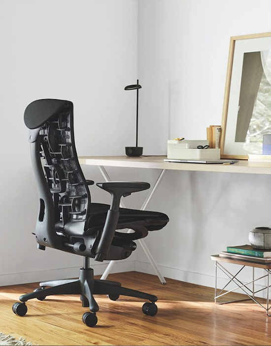 The Embody work chair is the modern benchmark for pressure distribution, natural alignment, and healthy movement. Instead of locking you into the seat, this modern ergonomic office chair combines active and passive ergonomics to encourage effortless long-term sitting. Its signature spinal design lets you manually fine-tune the fit to your back while the matrix of pixels in the seat and back automatically conform to your micro-movements.