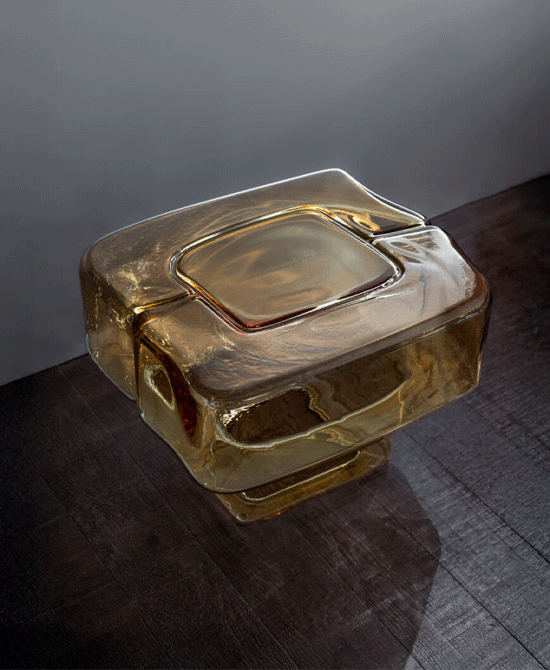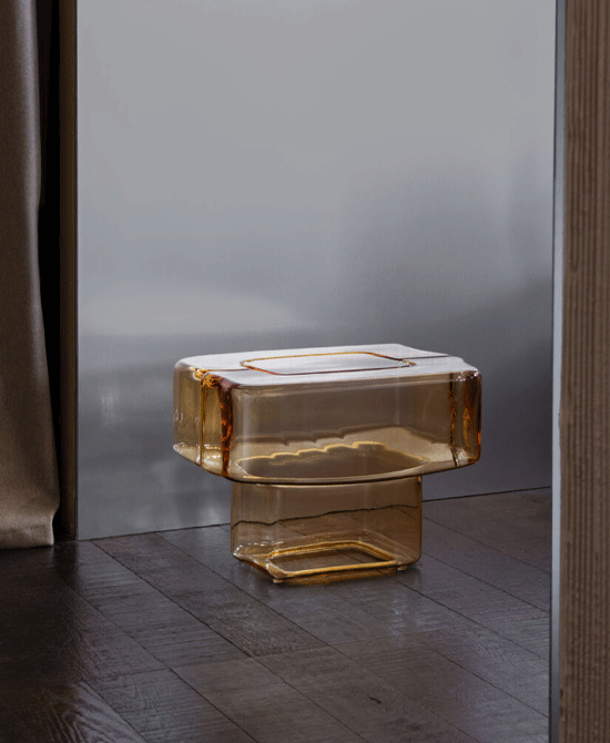 The Fluid Joinery side table is the result of a collaboration between Cassina and Linde Freya Tangelder, a Belgian designer who explores the boundary between object and architecture. Her research focuses on solid materials and essential forms, reinterpreted with a sober but structured language. This project is part of the vision of Cassina, a benchmark brand of Italian design, which combines formal innovation and craftsmanship.Made of mouth-blown glass inside a cast iron mould, the coffee table reaches the maximum dimensions compatible with this technique. The manual workmanship produces slight variations between each piece, making each one unrepeatable. The glass, coloured in paste, is available in three shades – amber, smoked, blue – that interact with the light creating overlaps and variations in density.The curved, uninterrupted surfaces are engraved vertically: subtle marks that run through the volume and reinforce the impression of continuity. Designed to live alone or in combination with other elements in the series Fluid Joinery always maintains an autonomous and defined presence. Despite its apparent lightness, glass takes on a structural role here, giving shape to an object that combines technical precision and visual immediacy.