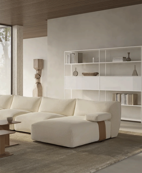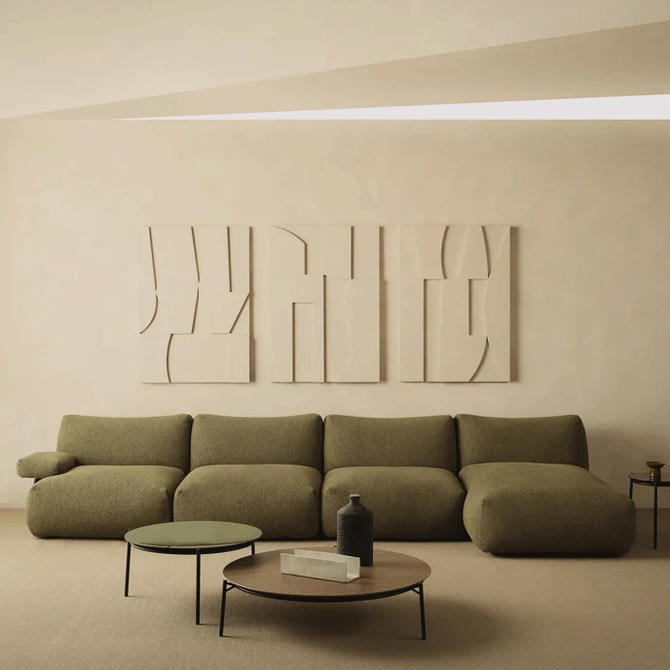 Goom, the new modular sofa designed by Jean-Marie Massaud for MDF Italia, is an authentic eulogy to the force of gravity, previewed at Salone del Mobile 2025. Conceived as a sculptural solid in which to sink with gusto, Goom combines geometric rigor and enveloping comfort, the result of in-depth research into materials and maximum softness. Its sharp, decisive lines result in a clean, contemporary aesthetic that invites relaxation. An iconic detail lies in the ends of the cushions, deliberately emphasized to create an elegant contrast between visual weight and lightness, suggesting a refined hanging effect. Goom is more than just a sofa: it is a modular system composed of multiple elements-single, chaise longue, corner elements, pouf and additional armrests-designed to offer endless compositional possibilities and adapt to every living requirement, whether in the home or contract environment.