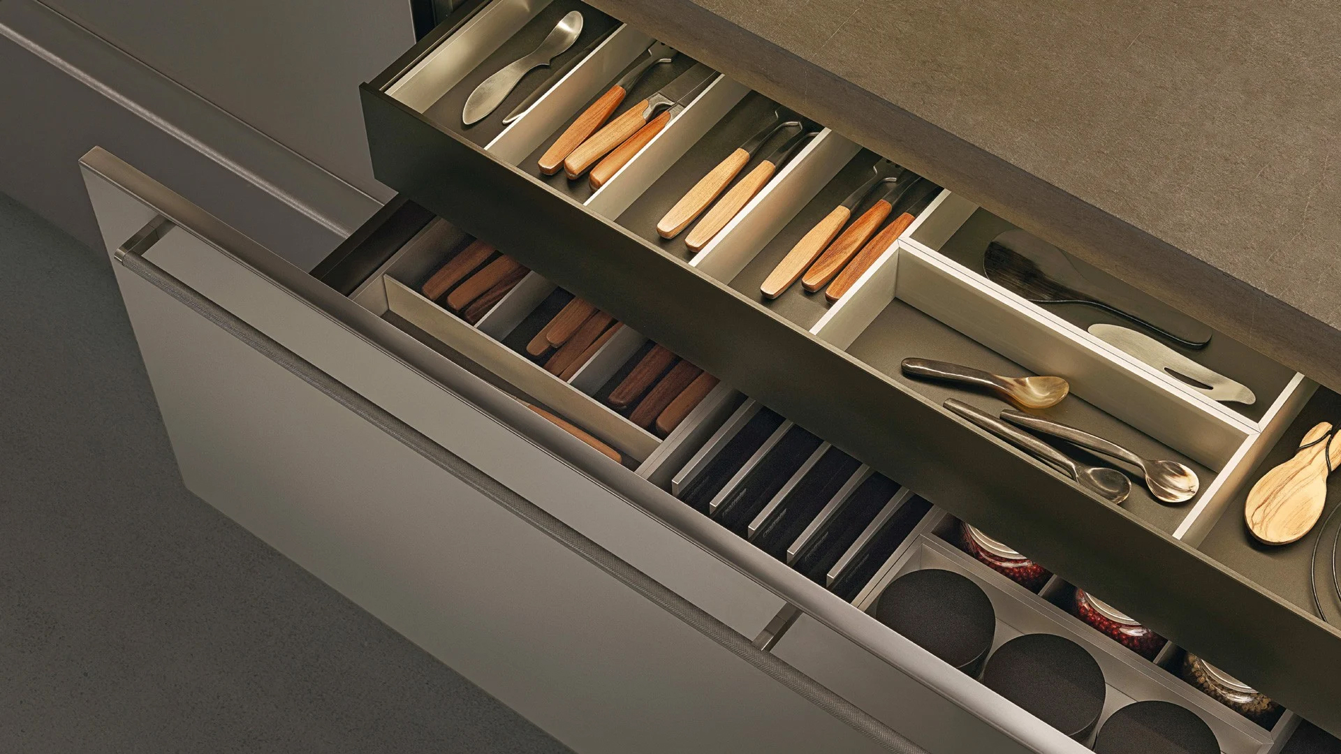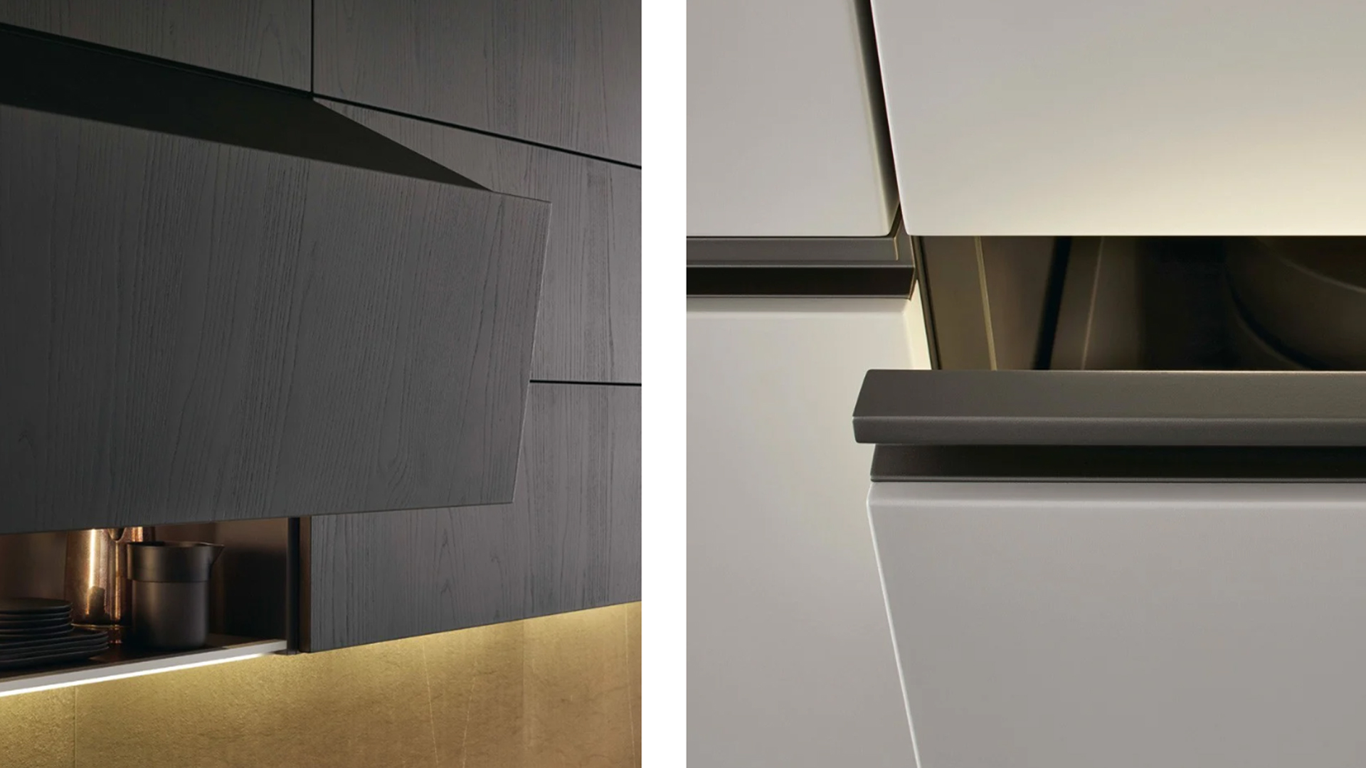 Poliform reinterprets the kitchen with practicality and lightness. This is thanks to components such as the handles, integrated or applied, and a lighter door that allows maximum freedom in the choice of finishes. Details that determine the uniqueness of My Planet, a project able to give life to original and exclusive compositional results even in environments of limited size.