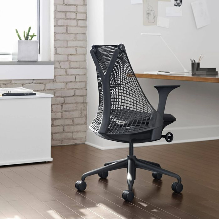 Béhar, who calls San Francisco home, began by looking at designs that deliver the most with the least. And then he took a look at his city’s best-known landmark: the Golden Gate Bridge. Béhar wondered, could the engineering principles of a suspension bridge be applied to a chair? The notion of using a suspension tower to support an unframed suspension back meant that the flexible elastomer suspension material could be stretched in a way that provided the greatest tension at points where support is needed and the least in areas that would allow for the most expansive range of motion.