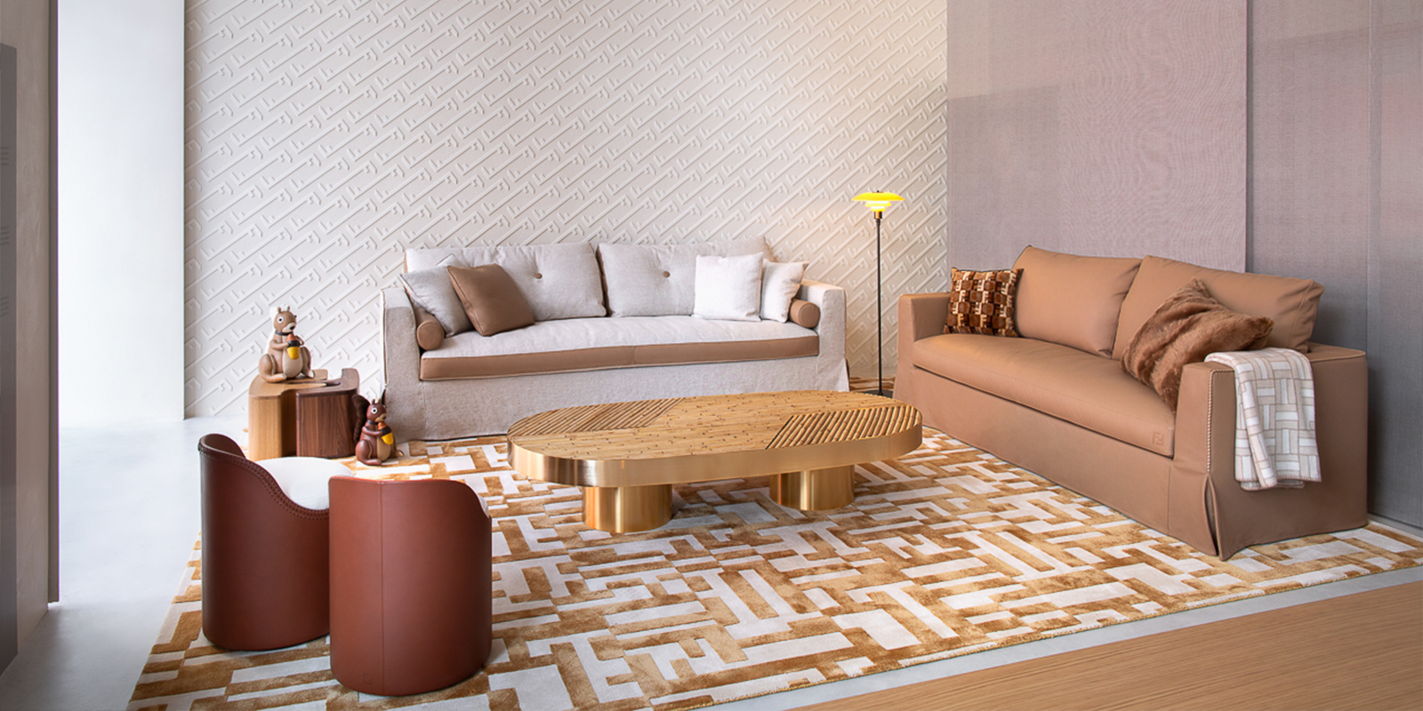 The Two More ottoman set has been designed as a decorative element in its own right, combining different geometries and modular heights. The frame finishes are inspired by Fendi ‘s design codes, including precious hand-stitching, while different seat upholstery options offer comfort and an unexpected interplay of textures. Whether paired or used individually, they adapt to different areas of the home.