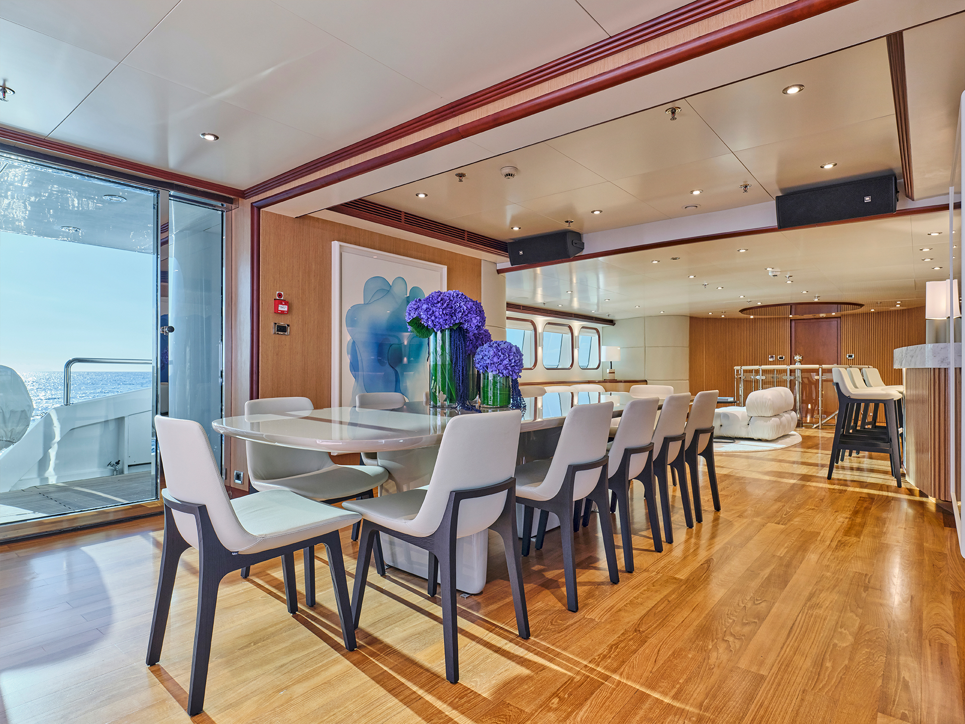 The M/Y SOJO, built by the Italian shipyard Benetti in 1984, reflects ΙPYD’S original vision to create a yacht that harmoniously combines luxury, elegance, and comfort. The result is a design that feels both modern and timeless, with a subtle touch of classic charm. By preserving key original elements, the interior now complements the yacht’s classic exterior lines while embracing a contemporary aesthetic.