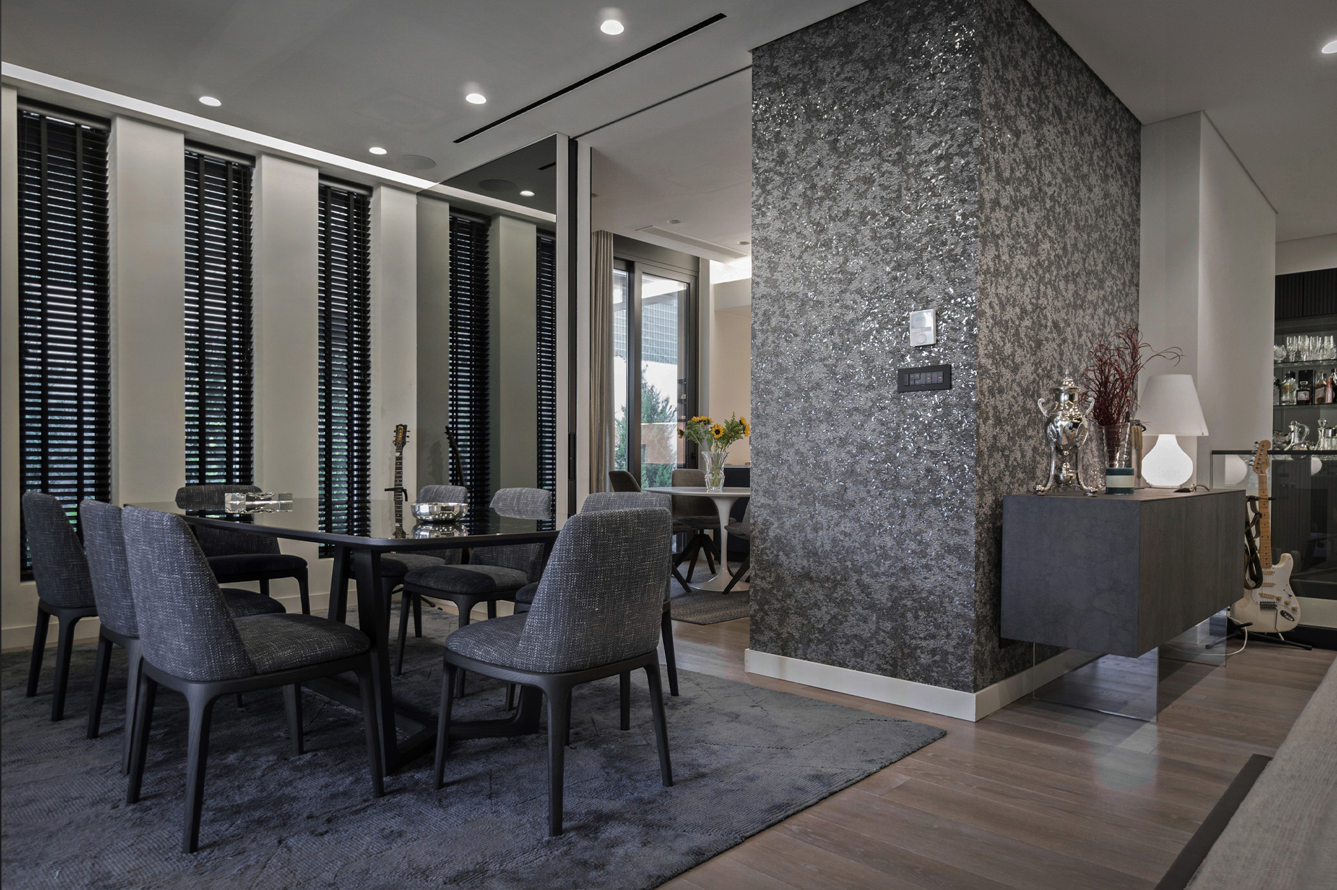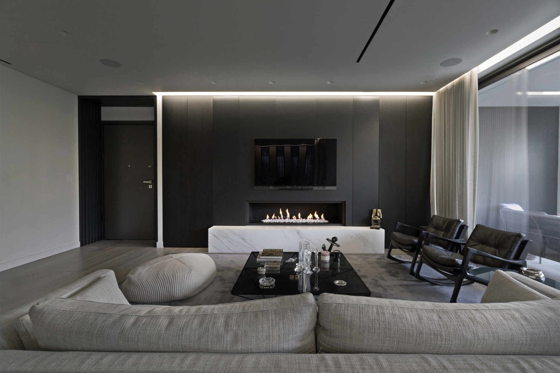 A passion for detail can be traced everywhere, as in the residence’s exquisite, seamless surfaces: capacious, sleek, made with an array of natural materials -such as wood and metal-, they contrast and complement the rest of the apartment’ s features, creating an almost unexpected unison. Dressed with supremely comfortable furnishings, the apartment’s sleek demeanor becomes a paradigm of cool.